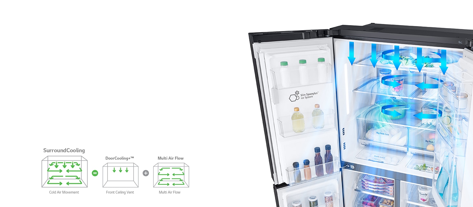 Designed with a sleek Pocket Handle, Dispenser Display and 706 litres of capacity, enjoy the convenience and storage of this modern and very stylish French door refrigerator.